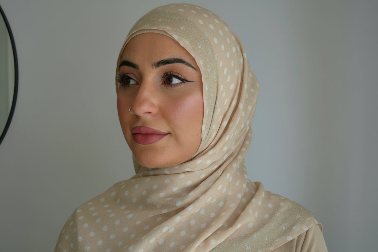 Inspired by the intricate elegance of Moorish lace carvings and the delicate shimmer of scattered pearls, this premium modal hijab blends heritage with modern sophistication. Soft beige and white palette is versatile, pairing effortlessly with any outfit from neutrals to bold shade, making it a timeless wardrobe essential.